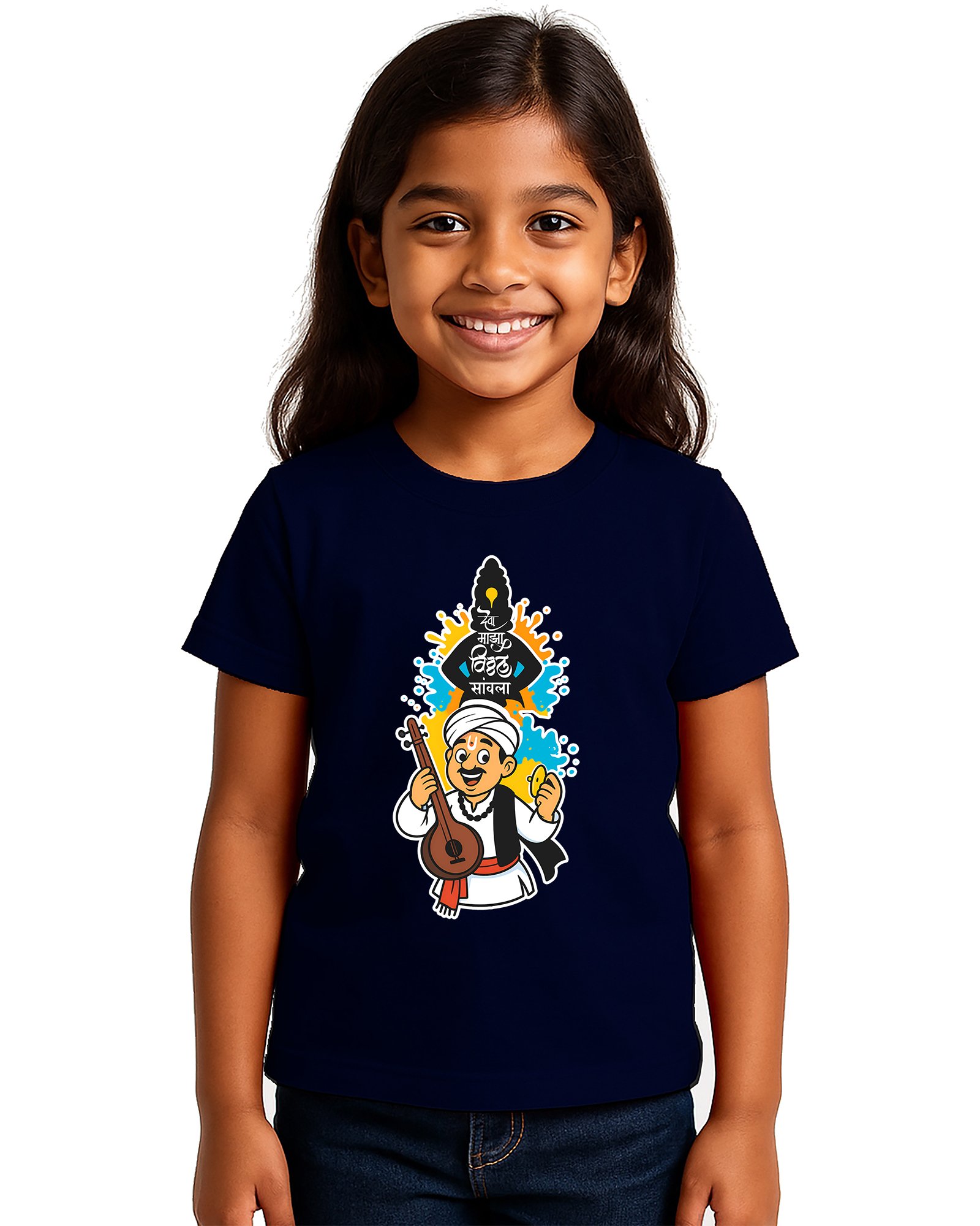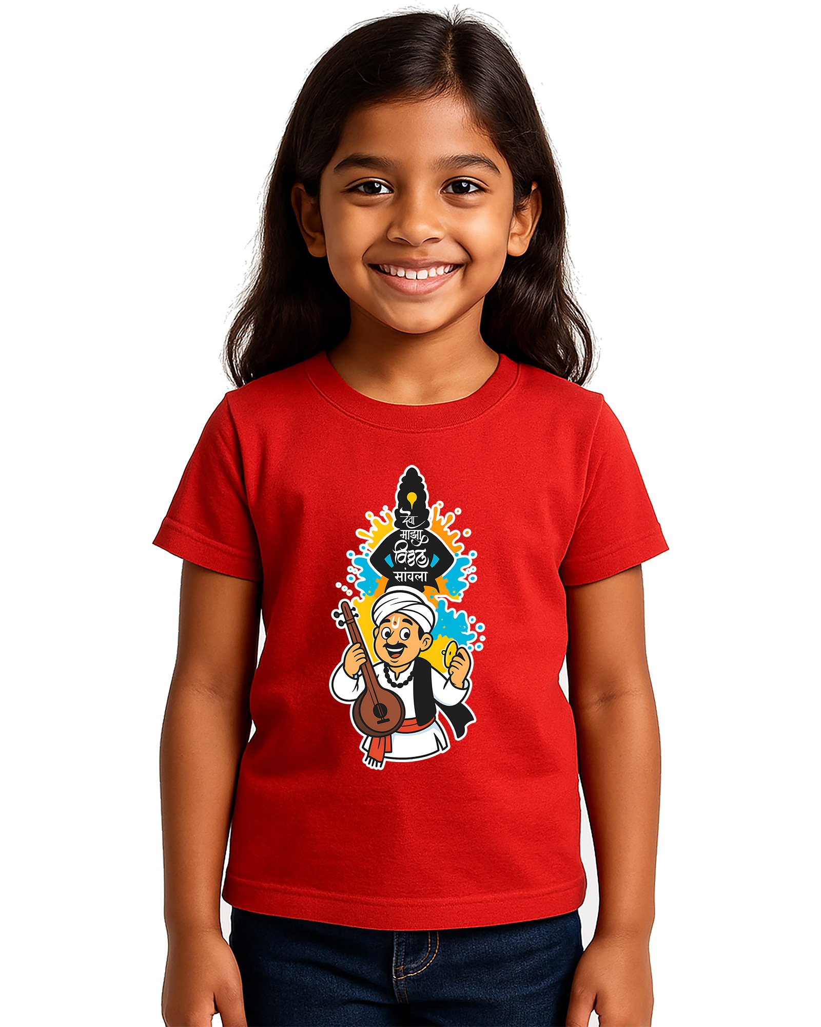 Caseria Girl’s Cotton Graphic Printed Half Sleeve T-Shirt – Dev Maza Vitthal Marathi
