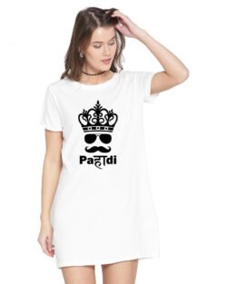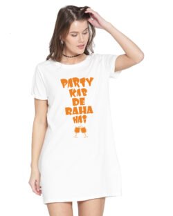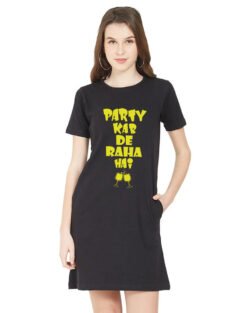 Caseria Women’s Cotton Biowash Graphic Printed T-Shirt Dress with side pockets – Party Kab De Raha Hai