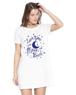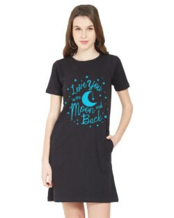 Caseria Women’s Cotton Biowash Graphic Printed T-Shirt Dress with side pockets – Love Moon And Back
