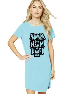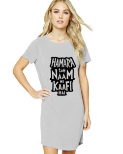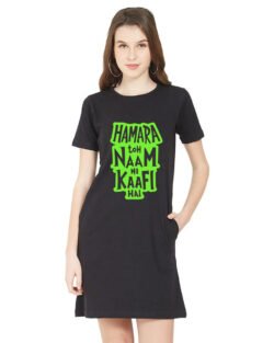 Caseria Women’s Cotton Biowash Graphic Printed T-Shirt Dress with side pockets – Naam Hi Kaafi Hai