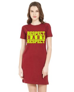 Caseria Women’s Cotton Biowash Graphic Printed T-Shirt Dress with side pockets – Respect Baby