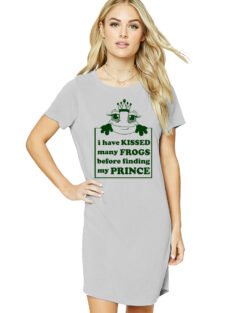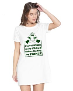 Caseria Women’s Cotton Biowash Graphic Printed T-Shirt Dress with side pockets – Kissed A Frog Prince