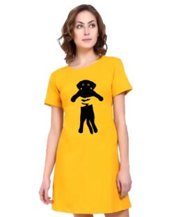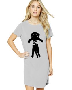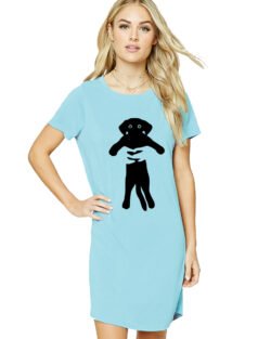 Caseria Women’s Cotton Biowash Graphic Printed T-Shirt Dress with side pockets – Squeeze Dog