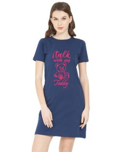 Caseria Women’s Cotton Biowash Graphic Printed T-Shirt Dress with side pockets – I Talk With Teddy