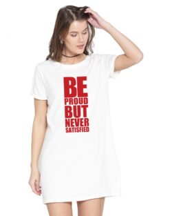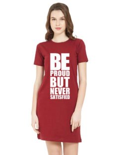 Caseria Women’s Cotton Biowash Graphic Printed T-Shirt Dress with side pockets – Be Proud Not Satisfied