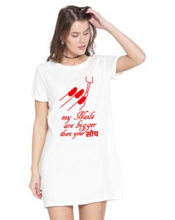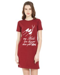 Caseria Women’s Cotton Biowash Graphic Printed T-Shirt Dress with side pockets – Nails Are Bigger