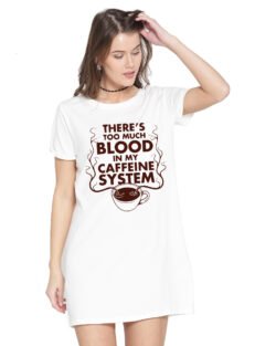 Caseria Women’s Cotton Biowash Graphic Printed T-Shirt Dress with side pockets – Blood Caffeine System