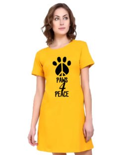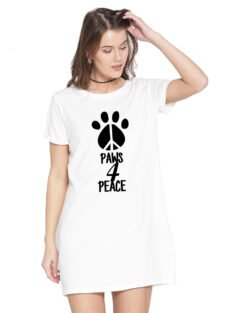 Caseria Women’s Cotton Biowash Graphic Printed T-Shirt Dress with side pockets – Paws 4 Peace