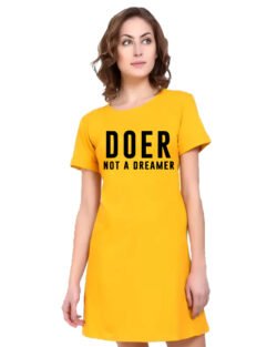 Caseria Women’s Cotton Biowash Graphic Printed T-Shirt Dress with side pockets – Doer Not Dreamer