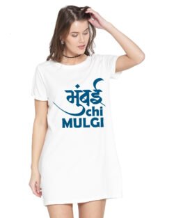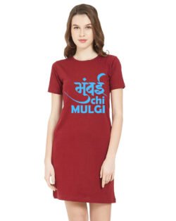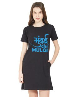 Caseria Women’s Cotton Biowash Graphic Printed T-Shirt Dress with side pockets – Mumbai Chi Mulgi