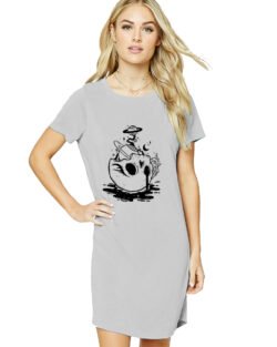 Caseria Women’s Cotton Biowash Graphic Printed T-Shirt Dress with side pockets – Skull Planets