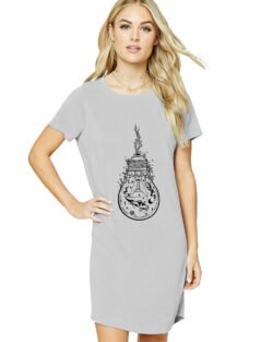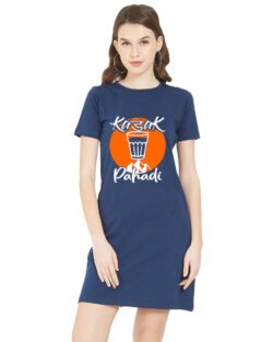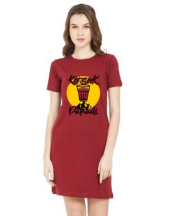 Caseria Women’s Cotton Biowash Graphic Printed T-Shirt Dress with side pockets – Kadak Pahadi