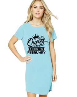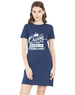 Caseria Women’s Cotton Biowash Graphic Printed T-Shirt Dress with side pockets – Queens Born In Feb