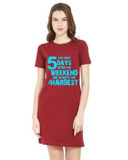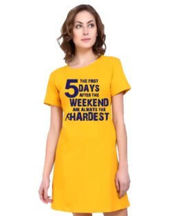 Caseria Women’s Cotton Biowash Graphic Printed T-Shirt Dress with side pockets – Days After Weekend