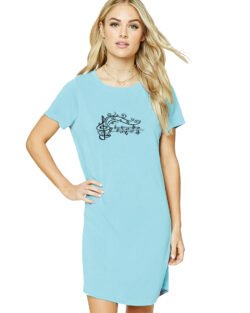 Caseria Women’s Cotton Biowash Graphic Printed T-Shirt Dress with side pockets – Tea Music