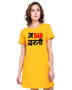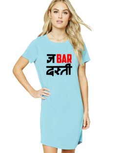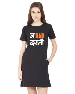 Caseria Women’s Cotton Biowash Graphic Printed T-Shirt Dress with side pockets – Jabar Dasti