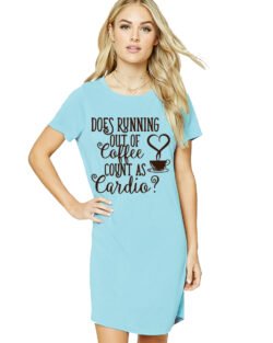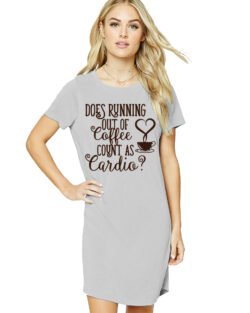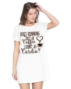 Caseria Women’s Cotton Biowash Graphic Printed T-Shirt Dress with side pockets – Coffee Or Cardio