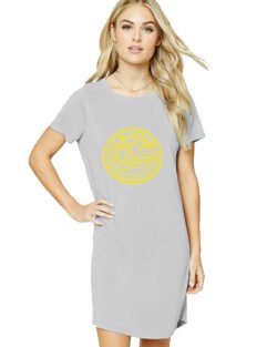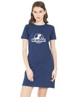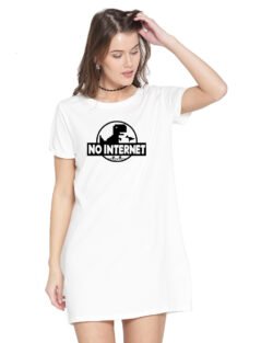 Caseria Women’s Cotton Biowash Graphic Printed T-Shirt Dress with side pockets – No Internet