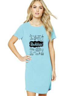 Caseria Women’s Cotton Biowash Graphic Printed T-Shirt Dress with side pockets – Bhukkhad
