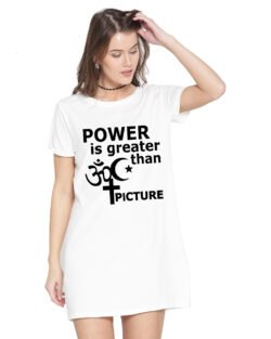 Caseria Women’s Cotton Biowash Graphic Printed T-Shirt Dress with side pockets – Power Great Than Picture