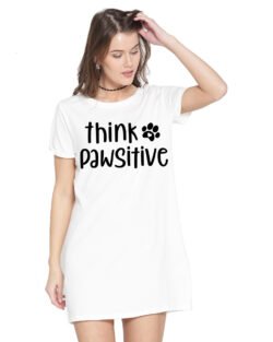 Caseria Women’s Cotton Biowash Graphic Printed T-Shirt Dress with side pockets – Think Pawsitive