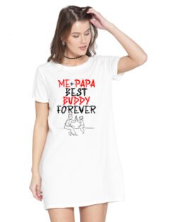 Caseria Women’s Cotton Biowash Graphic Printed T-Shirt Dress with side pockets – Me Papa Buddy