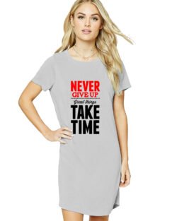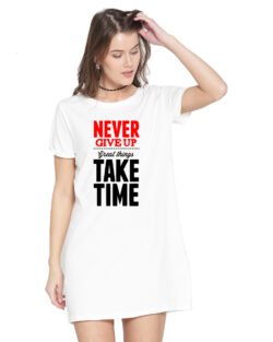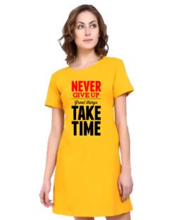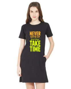 Caseria Women’s Cotton Biowash Graphic Printed T-Shirt Dress with side pockets – Take Time