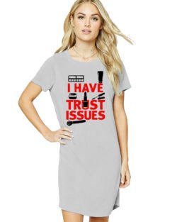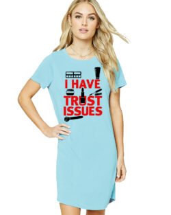 Caseria Women’s Cotton Biowash Graphic Printed T-Shirt Dress with side pockets – I Have Trust Issues
