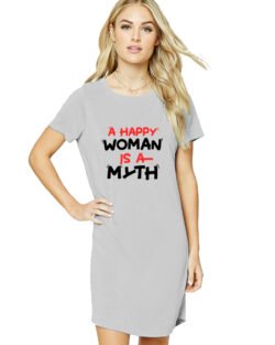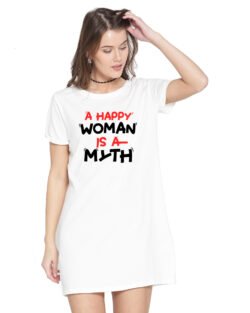 Caseria Women’s Cotton Biowash Graphic Printed T-Shirt Dress with side pockets – Woman Myth