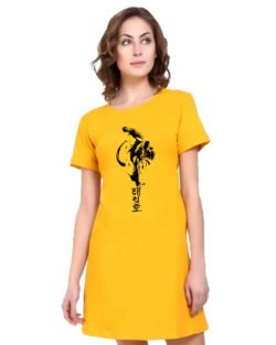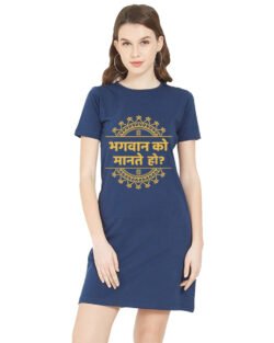 Caseria Women’s Cotton Biowash Graphic Printed T-Shirt Dress with side pockets – Bhagwan Ko Mante Ho