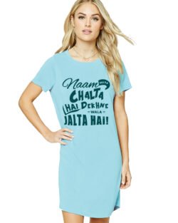Caseria Women’s Cotton Biowash Graphic Printed T-Shirt Dress with side pockets – Naam Chalta Jalta Hai