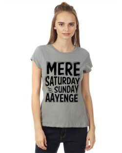 Caseria Women’s Cotton Biowash Graphic Printed Half Sleeve T-Shirt – Mere Saturday Sunday Aayenge