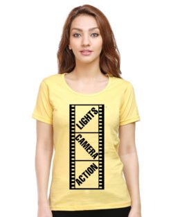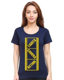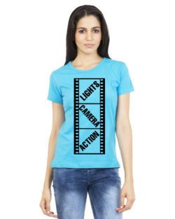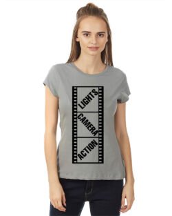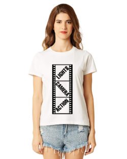 Caseria Women’s Cotton Biowash Graphic Printed Half Sleeve T-Shirt – Lights Camera Action Reel