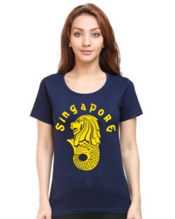 Caseria Women’s Cotton Biowash Graphic Printed Half Sleeve T-Shirt – Singapore Merlion