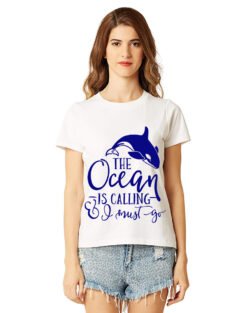 Caseria Women’s Cotton Biowash Graphic Printed Half Sleeve T-Shirt – Ocean Calling Pattern