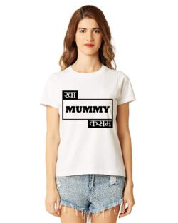 Caseria Women’s Cotton Biowash Graphic Printed Half Sleeve T-Shirt – Kha Mummy Kasam