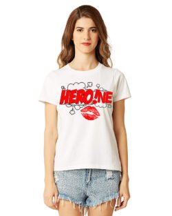 Caseria Women’s Cotton Biowash Graphic Printed Half Sleeve T-Shirt – Heroine Pout