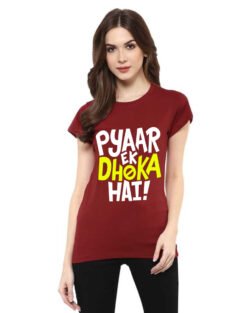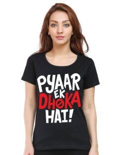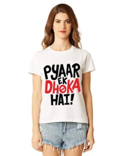 Caseria Women’s Cotton Biowash Graphic Printed Half Sleeve T-Shirt – Pyaar Ek Dhoka Hai