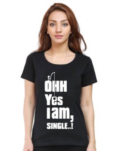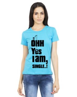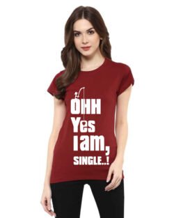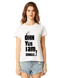 Caseria Women’s Cotton Biowash Graphic Printed Half Sleeve T-Shirt – Ohh Yes I Am Single