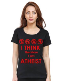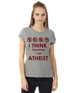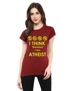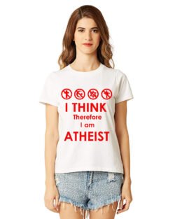 Caseria Women’s Cotton Biowash Graphic Printed Half Sleeve T-Shirt – I Think Atheist
