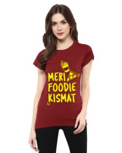 Caseria Women’s Cotton Biowash Graphic Printed Half Sleeve T-Shirt – Meri Foodie Kismat