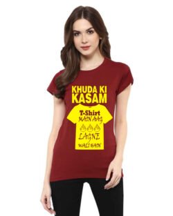 Caseria Women’s Cotton Biowash Graphic Printed Half Sleeve T-Shirt – Khuda Kasam Tshirt