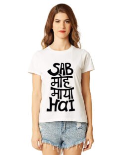Caseria Women’s Cotton Biowash Graphic Printed Half Sleeve T-Shirt – Sab Moh Maya Hai