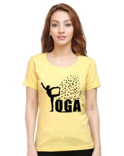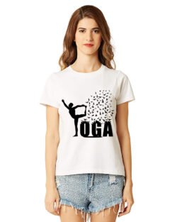 Caseria Women’s Cotton Biowash Graphic Printed Half Sleeve T-Shirt – Yoga Bird