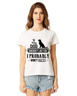 Caseria Women’s Cotton Biowash Graphic Printed Half Sleeve T-Shirt – My Dog Doesn’t Like