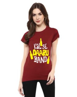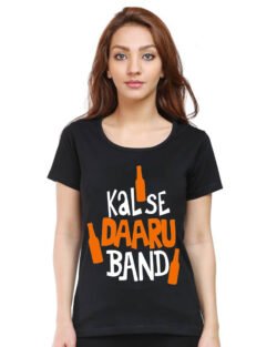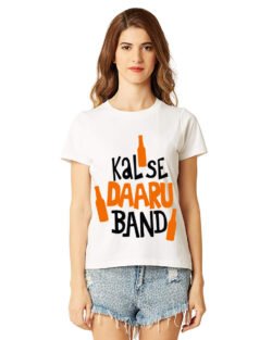 Caseria Women’s Cotton Biowash Graphic Printed Half Sleeve T-Shirt – Kal Se Daaru Band