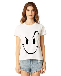 Caseria Women’s Cotton Biowash Graphic Printed Half Sleeve T-Shirt – Smiley Stroke