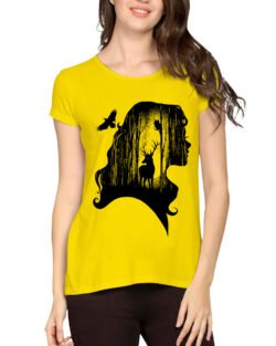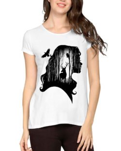 Caseria Women’s Cotton Biowash Graphic Printed Half Sleeve T-Shirt – Girl Deer