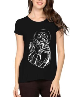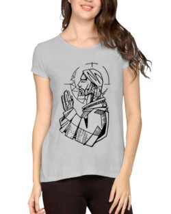 Caseria Women’s Cotton Biowash Graphic Printed Half Sleeve T-Shirt – Jesus Cross Calligraphy