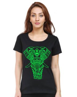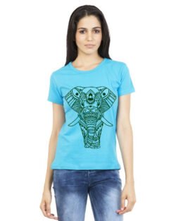 Caseria Women’s Cotton Biowash Graphic Printed Half Sleeve T-Shirt – Designer Elephant